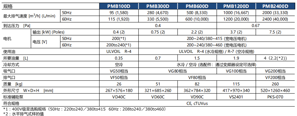 通用电机规格罗茨型PMB系列